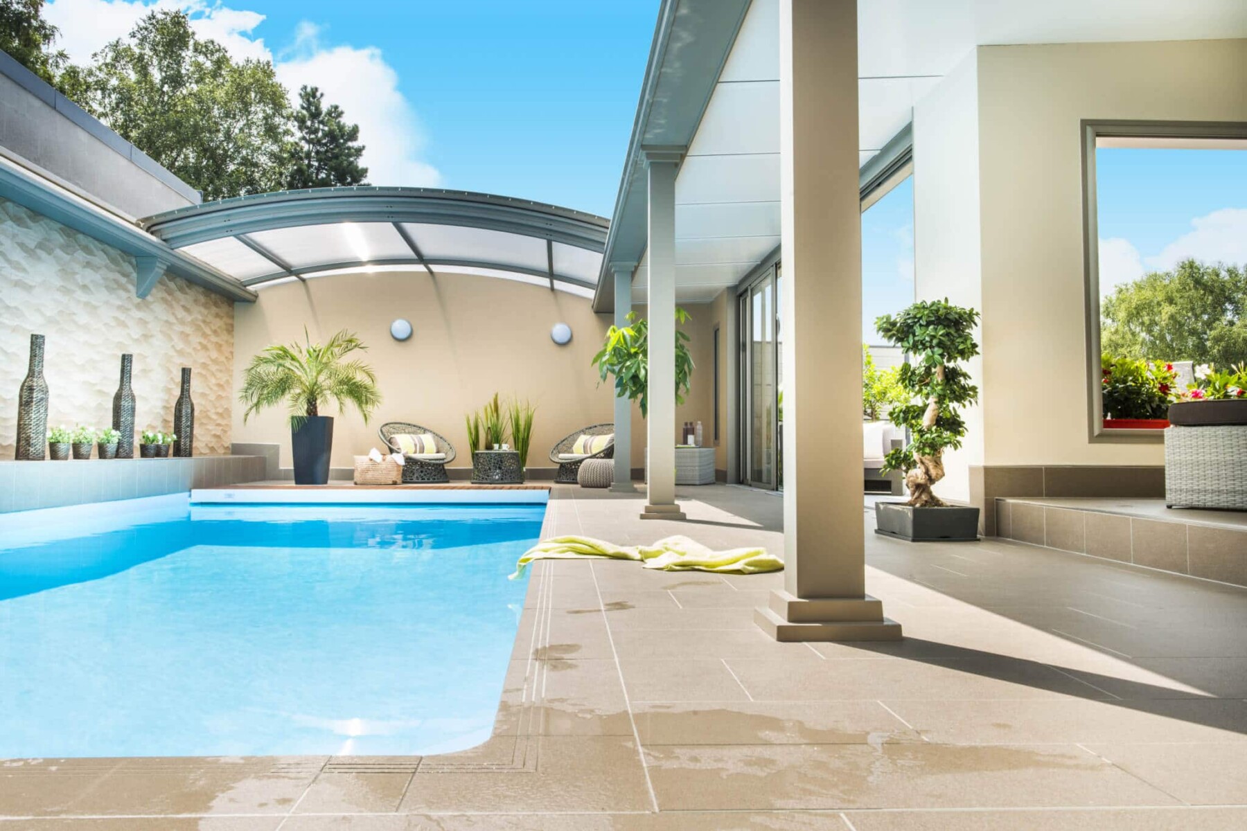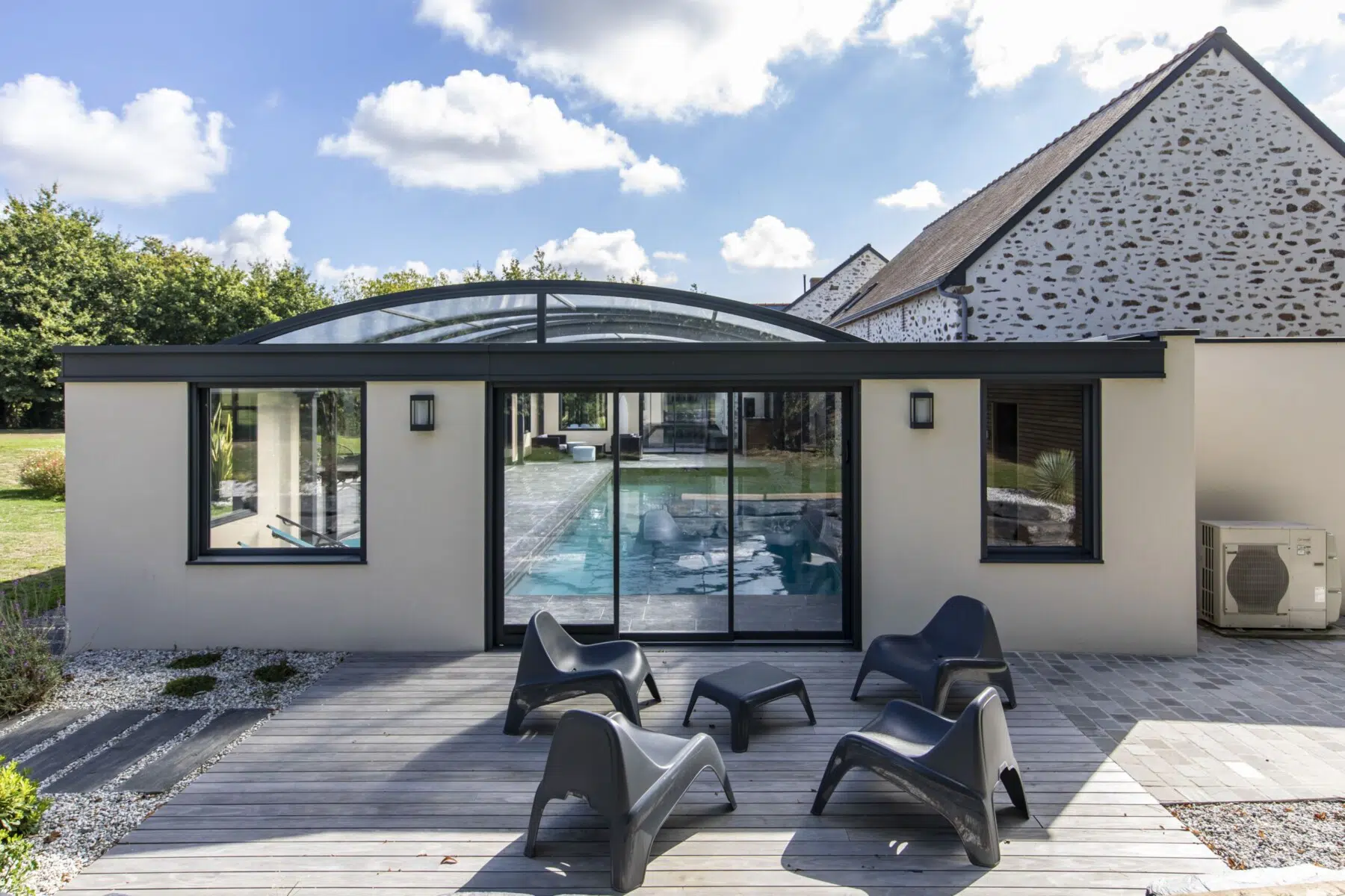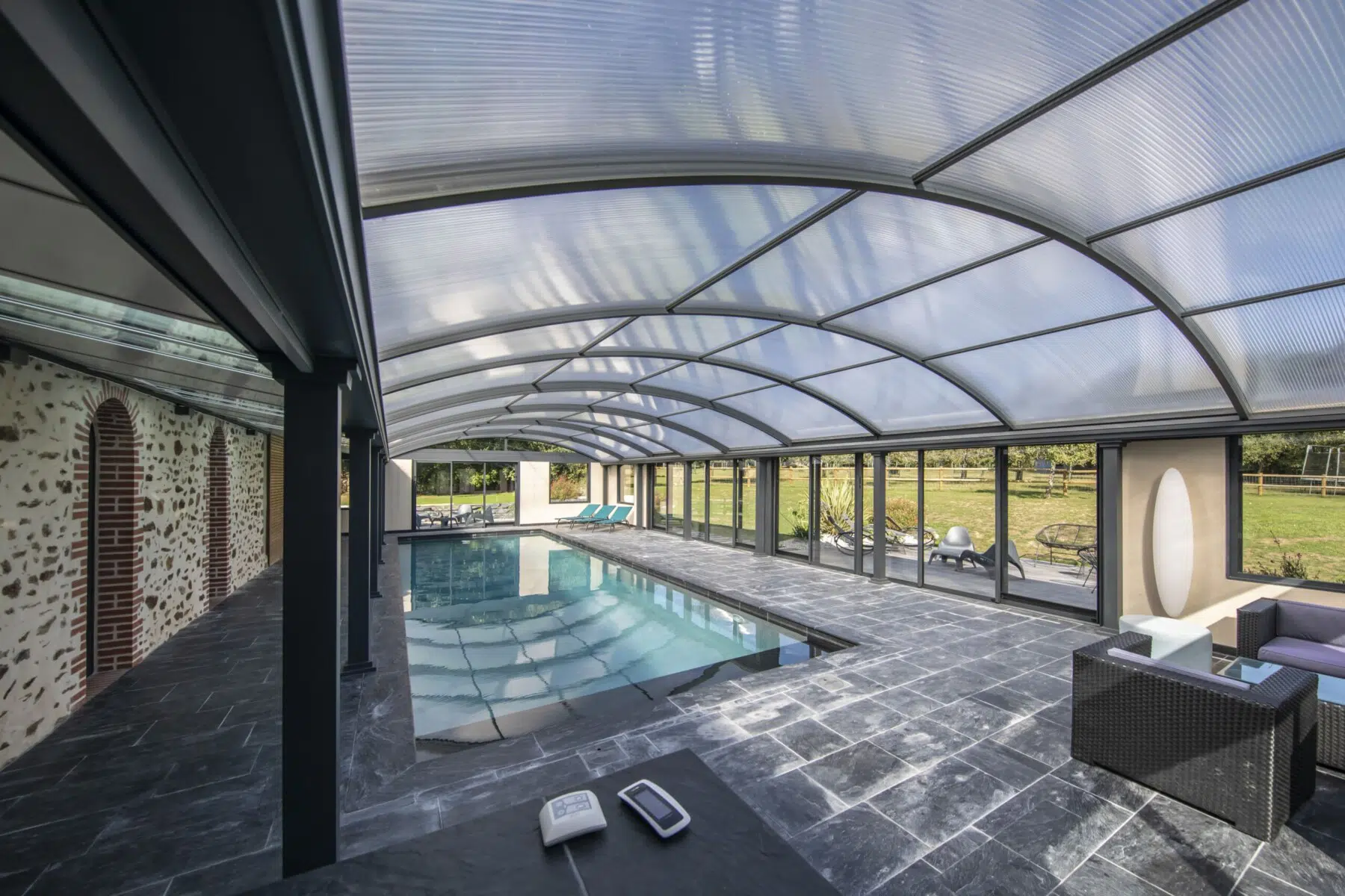 Transformez votre abri de piscine en un espace baigné de lumière grâce à la toiture entièrement vitrée.